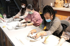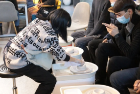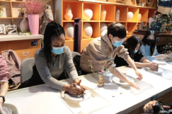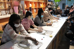 下午一点我们带领着来自世界各地的国际学生从学校出发,抵达了今日陶瓷体验馆。首先,老师为大家介绍了制陶工艺的基本流程,大致可以分为如下几步:练泥、拉坯、印坯、利坯、晒坯、刻花、施釉、烧窑、成瓷。