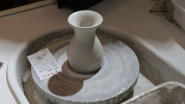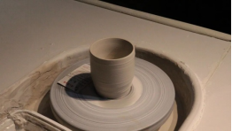 接下来老师为我们示范该如何拉坯,这是陶器成型的最初阶段。在拉坯机上,老师精湛的技艺仿佛给泥料赋予了生命,