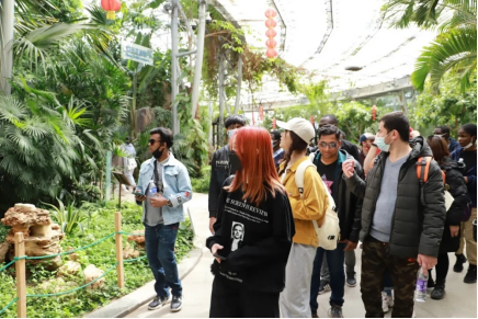 随后我们前往植物园,一览百卉的芬芳。步入植物园,国际学生们随即被这迎面而来的春意深深吸引,纷纷驻足在盛放的花朵前,用影像记录下这满园春意。同时也走进温室,去感受热带植物的独具一格与那份来自热带的魅力。