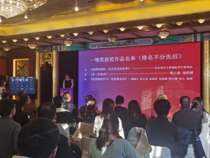 由北京市政府外办主办,光明网承办,北京市各区外办协办,北京外国语大学、北京海外学人中心、快手、微视等支持的“北京·国际范儿”短视频大赛颁奖仪式12月29日在北京朝阳区举行。北京市人民政府外事办公室副主任于海永,北京市朝阳区副区长孟锐,北京海外学人中心党委副书记、副主任虎翼雄,光明网副总经理宋乐永,快手科技副总裁张军出席会议颁奖仪式并为获奖代表颁奖。我校参赛作品“语国际接轨,从北京走向世界”荣获大赛一等奖,国际学生管理处获得贡献奖。